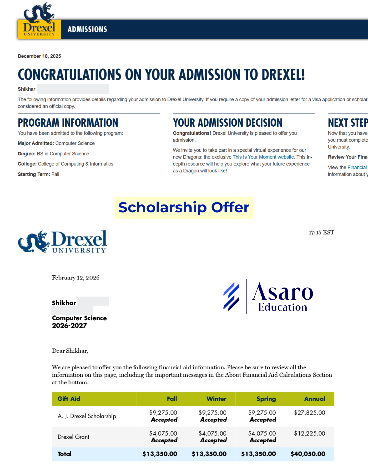 Affordability mapped early using our proprietary scholarship database, built from historical data across 500+ universities.
